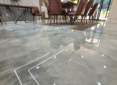 At CemTech Flooring, we specialise in high-quality seamless flooring solutions for both residential and commercial spaces. Our expertise includes micro-cement, decorative cement systems, slab works, and comprehensive floor preparation, ensuring a solid foundation for every installation. We offer bespoke epoxy flooring solutions, including marble-effect, metallic, monotone, terrazzo-style, and quartz finishes—each tailored to suit the client’s aesthetic and functional requirements. In addition, we supply and install vinyl and laminated flooring, providing versatile and durable options across a wide range of environments.